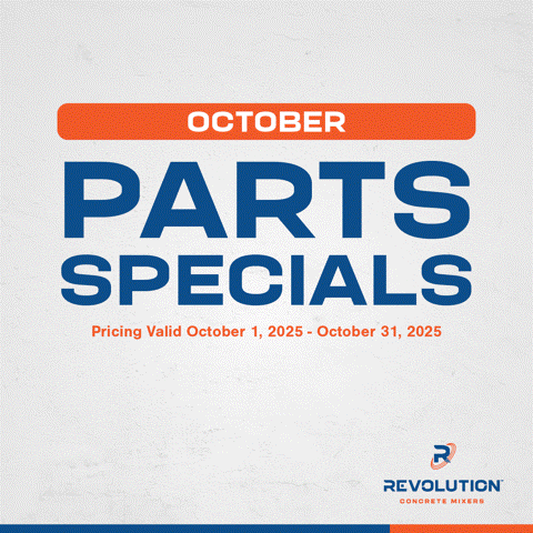October is here, take advantage of this month’s parts specials, hosted by Robert Arocho. Revolution is your only source for Genuine and OEM replacement parts for your Revolution and McNeilus Mixers. With competitive pricing and thousands of parts in stock and ready to go, your concrete mixer won’t be left waiting. Contact Robert and the Expert Parts Team today at (855) 202-6491, email mixerparts@revolutionmixers.com, or shop online at revolutionmixers.com. Hurry because these specials close with the month.